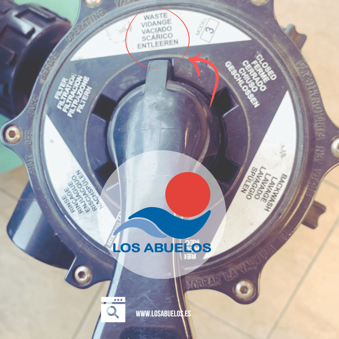 La buena noticia es que existe una solución sencilla y segura: utilizar la válvula selectora en función de vaciado (desagüe). Pero —y esto es fundamental— antes de hacerlo hay que cerrar la válvula del skimmer y la del limpiafondos. Ese pequeño detalle técnico marca una gran diferencia.