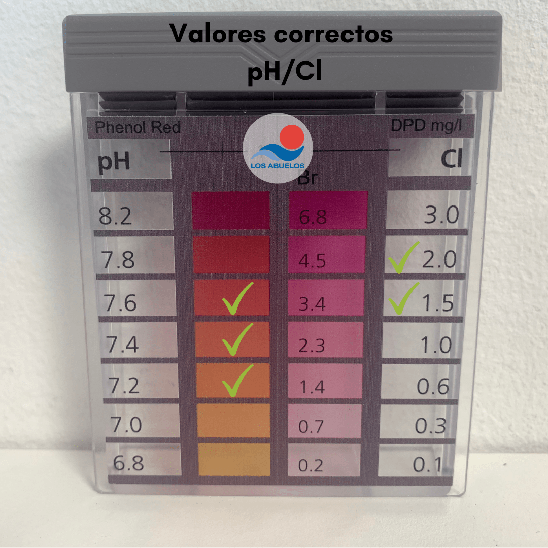 Primero medir, después corregir pH y después desinfectar de forma eficiente con cloro líquido o con pastillas.